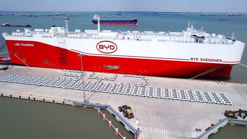 “比亚迪深圳”轮首航靠泊太仓港码头。